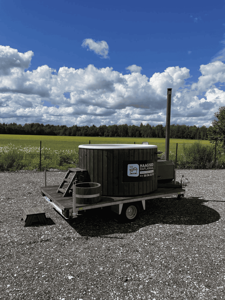 Lihtsalt transporditav mullidega kümblustünn haagisel – ideaalne pidudele, üritustele või lõõgastumiseks looduses.